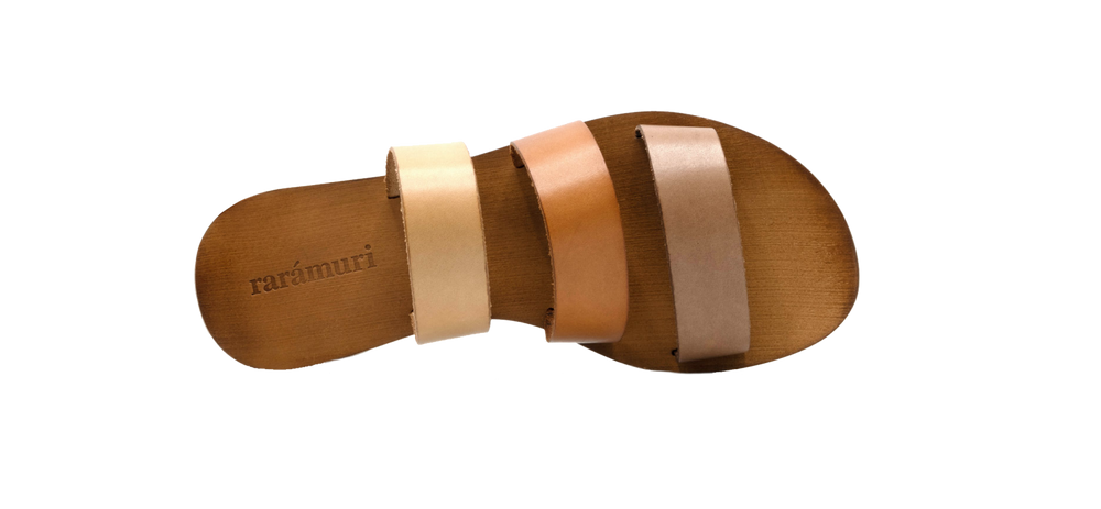Hippy chic slide with a tricolor of leather straps. The Tijuana travel sandal is sure to pair well with any outfit.